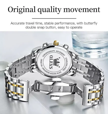 Годинник наручний OLEVS 2859 – стильний аксесуар, що поєднує класичну елегантність з практичними функціями. Завдяки високоточному кварцовому механізму годинник показує точний час. Три додаткові циферблати хронографа допоможуть відстежувати час з точністю до секунд, а світлове покриття на стрілках зробить читання в темряві зручним. Корпус зі сплаву з вакуумним покриттям поєднується з міцним браслетом з нержавіючої сталі – ідеальне поєднання міцності та естетики. Наявність водозахисту дозволяє не знімати годинник під час дощу або миття рук.