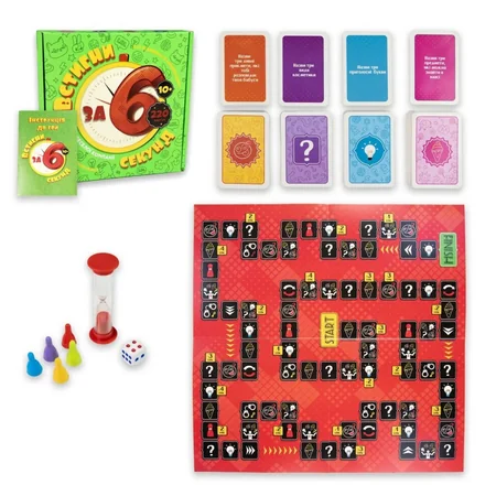 Комплект: 40 карток з картинками, 4 фішки, кубик, ігрове поле з розфарбуванням, фарби, пензлик, інструкція;